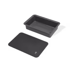 Prep, store, and carry food to the barbecue like a pro with the Weber Works™ Basin with Cutting Board Lid. This handy set includes a food-safe container with a lid that doubles as a two-sided cutting board. Marinate and store meats or prepped ingredients in the container, then transport them securely to the barbecue. Use one side of the cutting board for prep then flip it over for carving and serving. The basin and cutting board are designed for Weber Works™ compatible barbecues, griddles, smokers, stands, and tables.